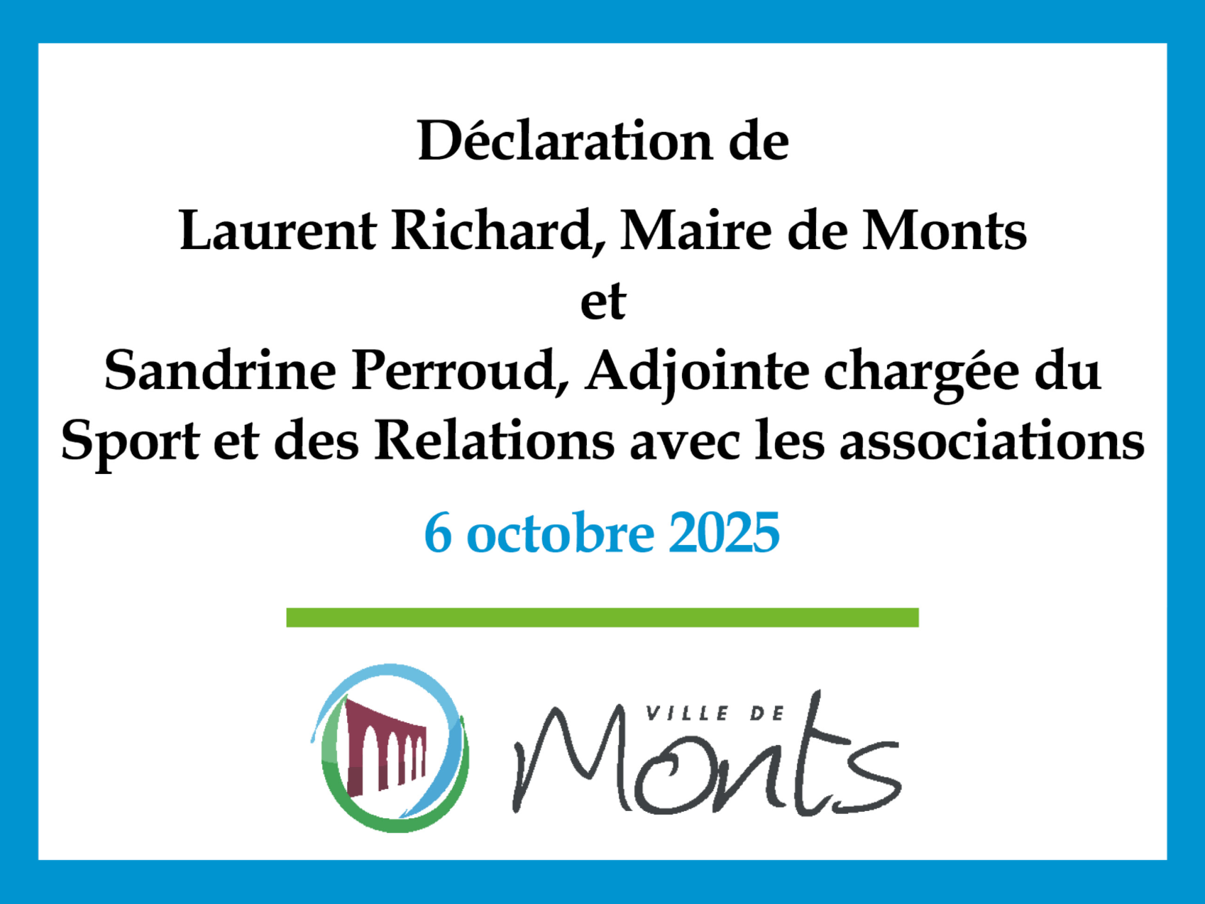 Déclaration de L. Richard, Maire, et S. Perroud, Adjointe en charge du Sport et des Associations
